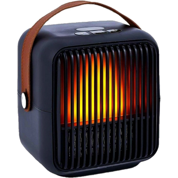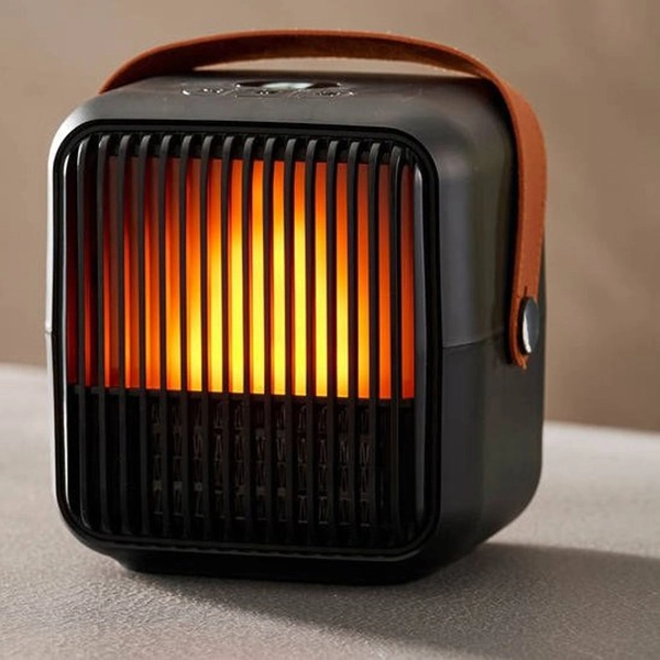 هیوندای در این مدل روی طراحی خیلی حساب باز کرده است. جلوی دستگاه یک پنل با افکت شعله شومینه قرار گرفته که با استفاده از نور LED، تصویر شعله آتش را شبیهسازی میکند. این افکت، واقعی آتش نیست اما از نظر حس و حال، فضای اتاق را شبیه یک شومینه کوچک میکند، بدون دود، بدون آلودگی و بدون دردسر. ترکیب این جلوه با بدنه مکعبی و رنگ تیره، باعث میشود که بخاری روی میز، کنار تلویزیون یا در گوشه اتاق، شبیه یک گجت شیک بهنظر برسد، نه یک بخاری سنتی. دستگیره چرمی بالای دستگاه هم همزمان نقش ظاهری و کاربردی دارد؛ هم محصول را جذابتر میکند، هم جابهجایی آن بین اتاقها، دفتر کار یا حتی همراهبردن در سفر را راحتتر میسازد. کاربر میتواند خیلی ساده بخاری را روی میز، کنار تخت یا روی زمین نزدیک پاها قرار دهد و با چند دکمه، هم افکت شعله و هم گرمایش را کنترل کند.